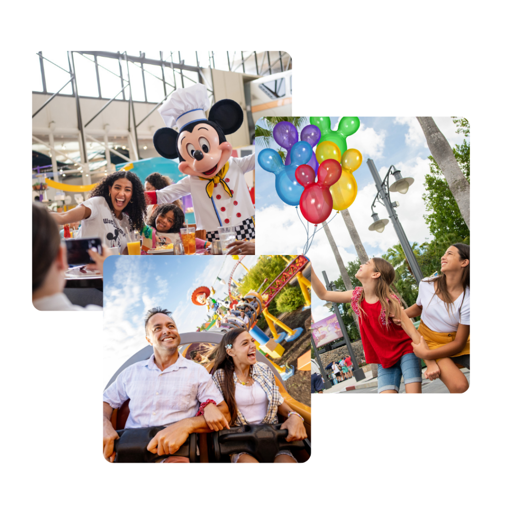 Un día entero en cada uno de los Parques Temáticos Disney: Magic Kingdom Park, EPCOT, Disney’s Hollywood Studios y Disney’s Animal Kingdom Theme Park.